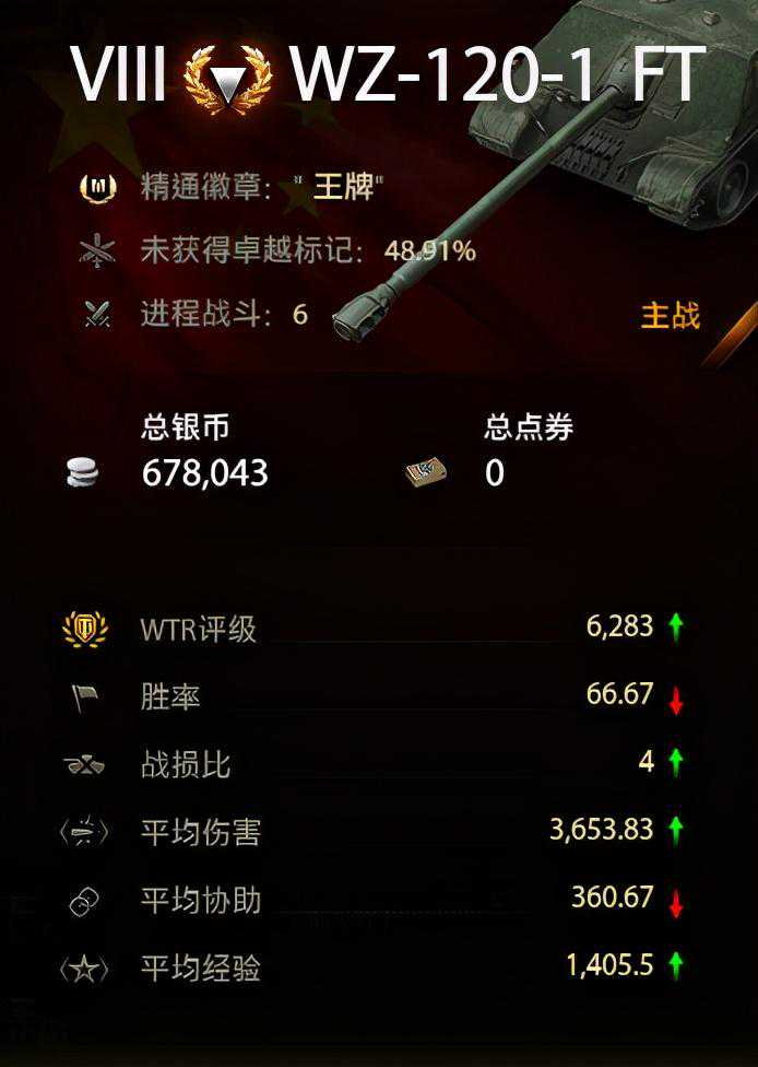 战绩镇楼,3653场均强而有力,0.5的装甲利用率也就比我自己的野牛与IS-3低一点,算是很靠谱的了。场均发现和场均击毁都远高于我自己的莱茵和SU130PM。
