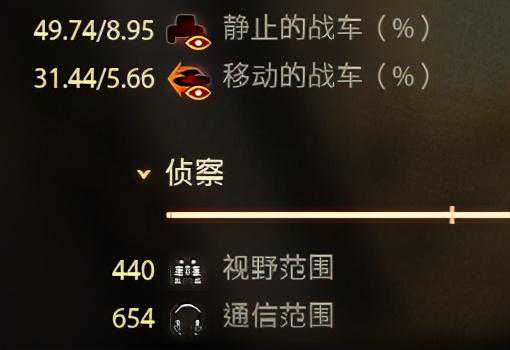 全白装49.7隐蔽,440视野。如果带红通风则能叠到50隐蔽443视野,紫通风刚好445视野,不过没有必要。