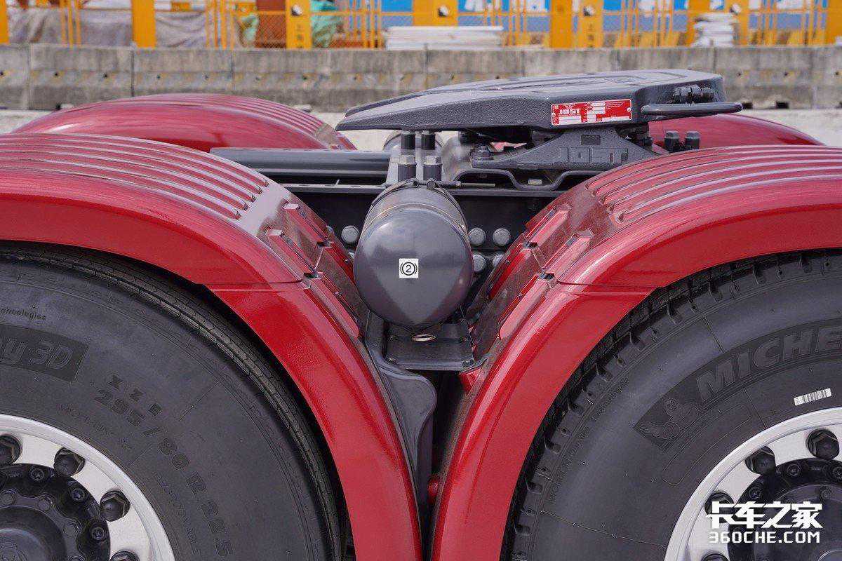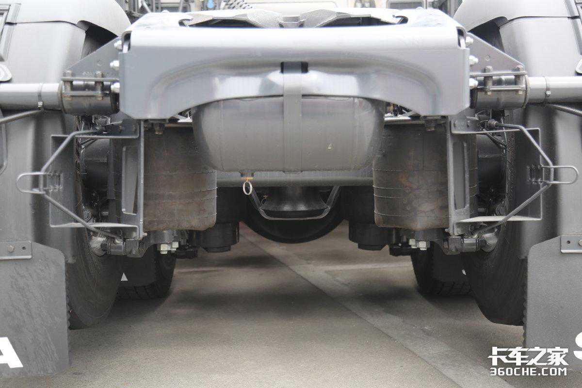 后桥均为空气悬架带有ECAS电调功能,空气悬架的加入一方面可以提升我们高速运输、干线运输中的稳定性,另一方面可以降低货损适用于高附加值的货物运输中。最后面对时效要求较高的甩挂运输时,空气悬架快速升降高低的能力更能提升运输时效。