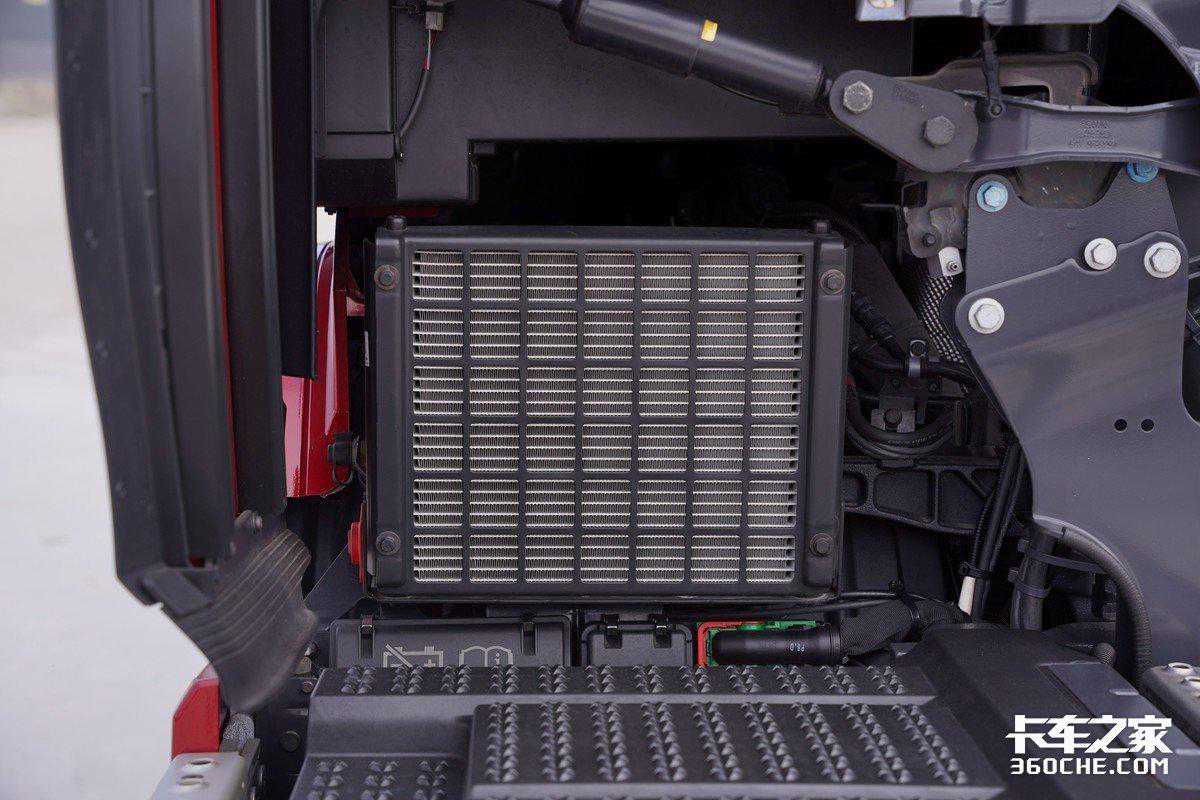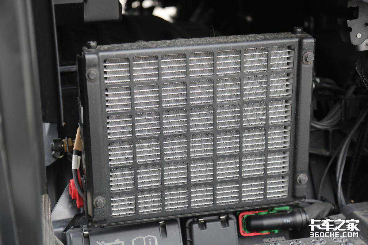值得一提的是S系列以及V8车型均配备了驻车空调,这也是斯堪尼亚最新车型的一项标配,这个区域是驻车空调的散热机构,在日常运营的过程中切记不要在该区域上方放置抹布或者其他物品,避免在休息时导致空调温度异常,或者散热器失效。