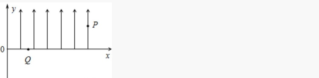 画完轨迹后,我们看题意,粒子过原点且向竖直正方向射出,所以轨迹圆的圆心O'一定在x轴上,匀速直线运动的方向显然与轨迹圆相切时面积最小,所以自然再画切线与水平方向的交点就是Q点。通过几何关系其他就不难求出。