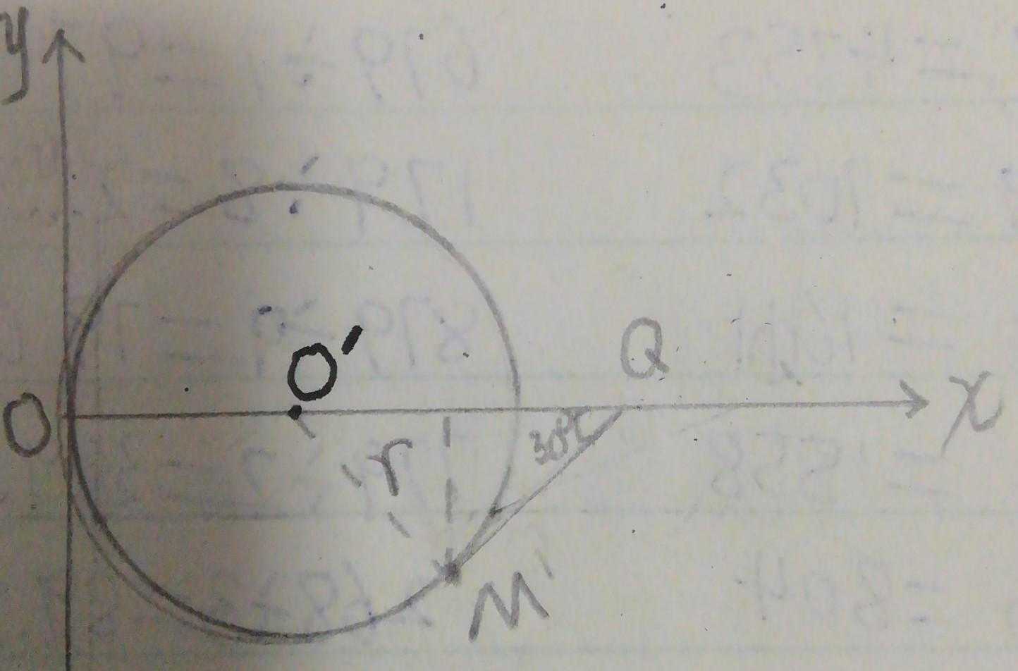 解析:电子从点开始在电场力作用下作类平抛运动运动到点,我想这方面内容只要你好好学习过,应该没有什么问题。在此不再赘述。由第一问我们可以知道经过Q点后,带电粒子以与水平方向负半轴方向成30º角的方向射入第四象限。先做匀速直线运动,再匀速圆周运动,看起来不太好想或者不太好画。此时我们可以先画轨迹圆。如图所示。