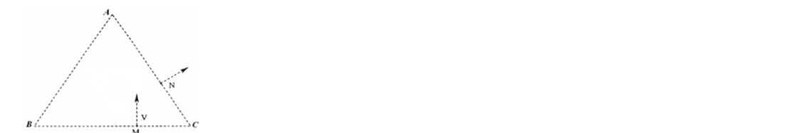 例3一个质量为m,带+q电量的粒子在BC边上的M点以速度垂直于BC边飞入正三角形ABC。为了使该粒子能在AC边上的N点(CM=CN)垂真于AC边飞出ABC,可在适当的位置加一个垂直于纸面向里,磁感应强度为B的匀强磁场。若此磁场仅分布在一个也是正三角形的区域内,且不计粒子的重力。试求:(1)粒子在磁场里运动的轨道半径r及周期T;(2)该粒子在磁场里运动的时间t;(3)该正三角形区域磁场的最小边长;