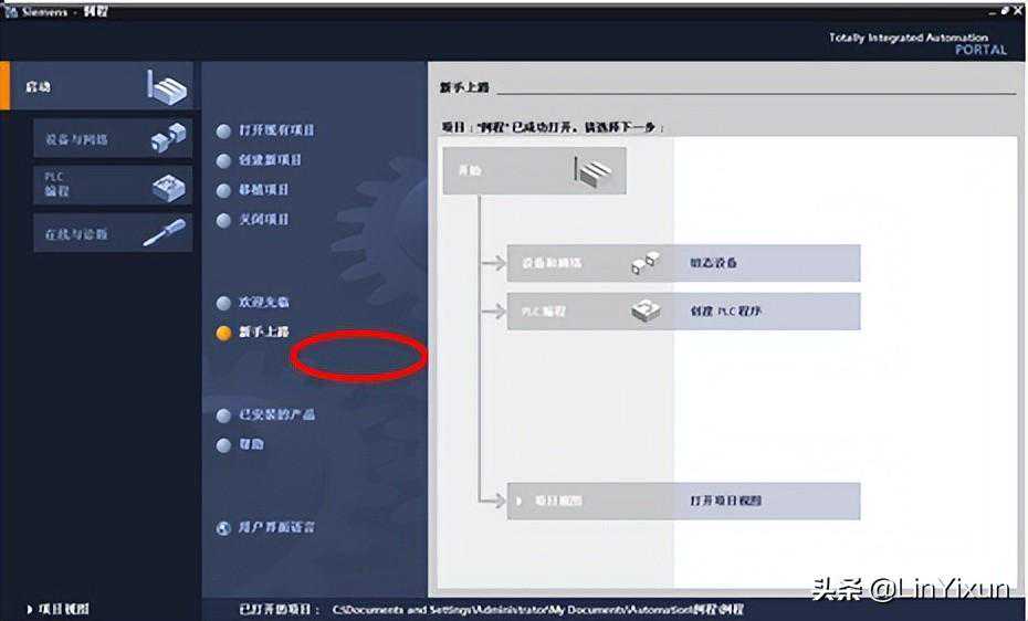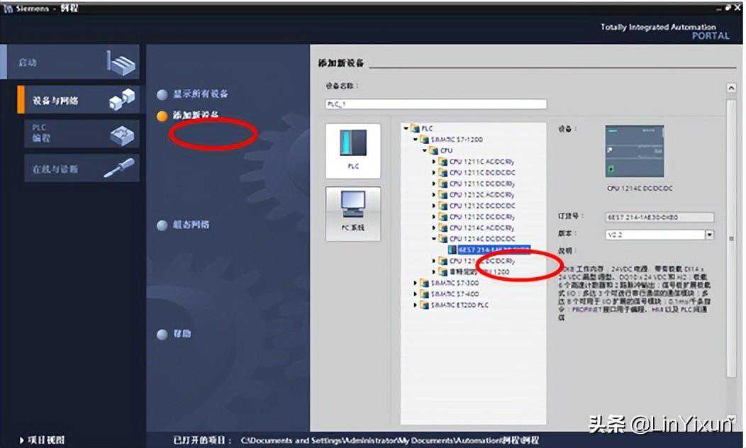 按照新手上路的提示首先选择设备和网络,进行硬件组态。