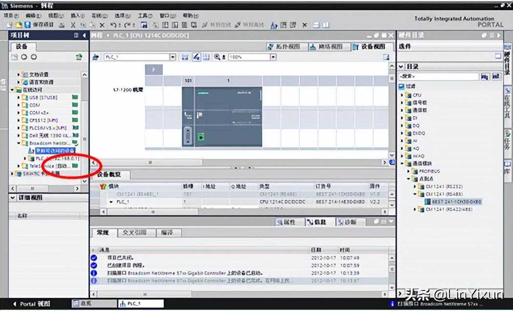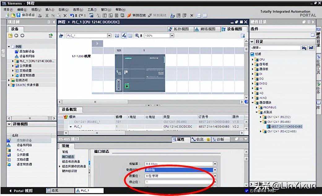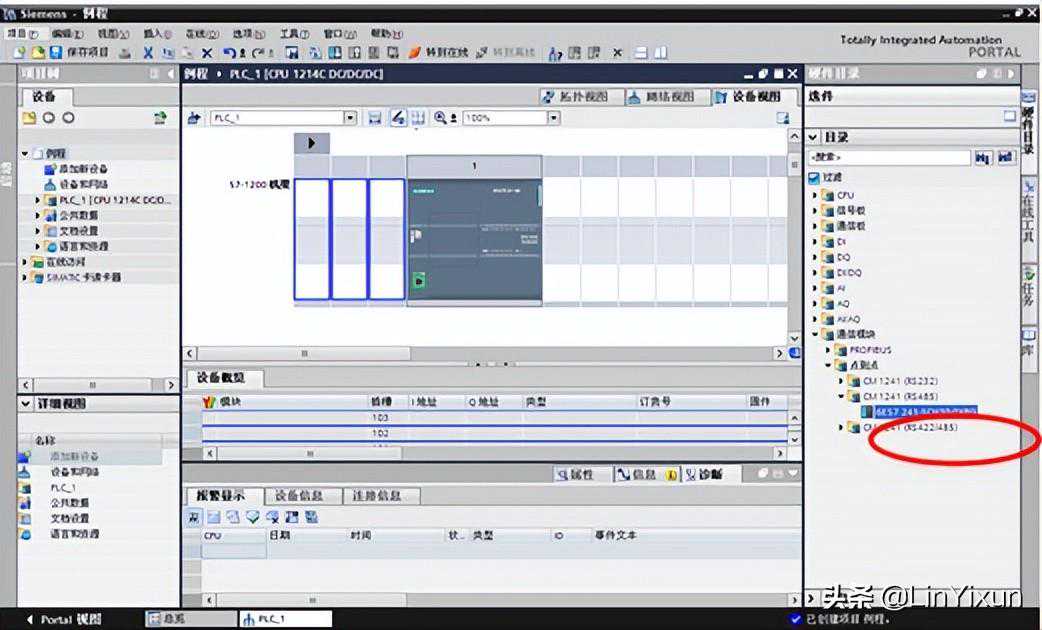 在弹出的设备与网络的右侧硬件目录中,找到通信模块-点到点-CM1241(RS485),加入CM1241通信模块。