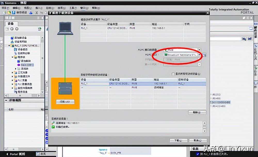 在左侧的项目树-设备-在线访问-BroadcomNetXtreme。。。(本例程PC机所使用的网卡),双击更新可使用的设备,搜索到连接的设备。
