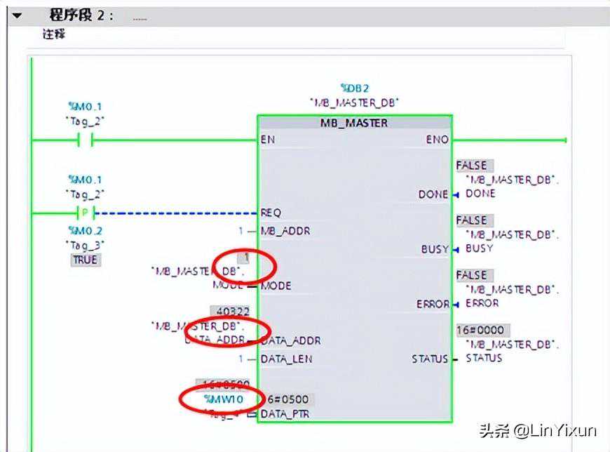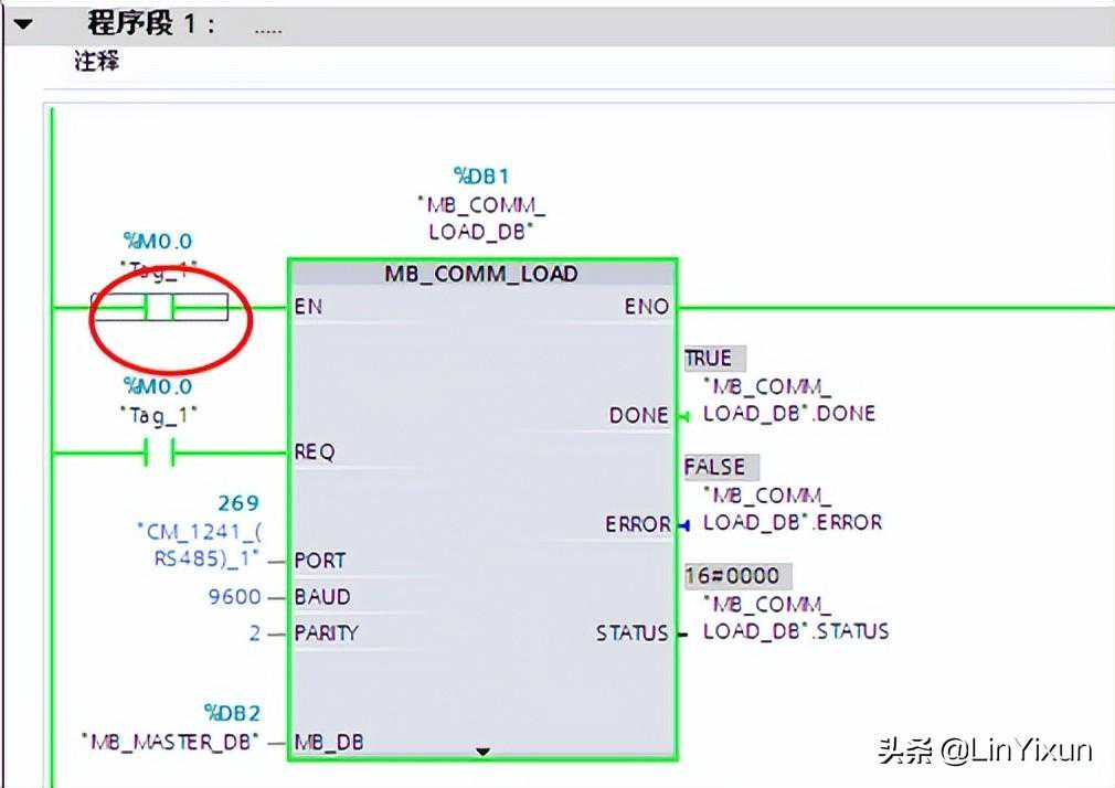 MB_COMM_LOAD使能完成之后,一定要将Tag_1关闭,否则MB_MASTER模块将无法使用。