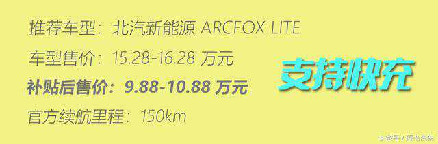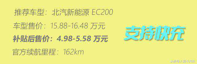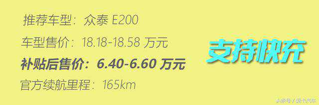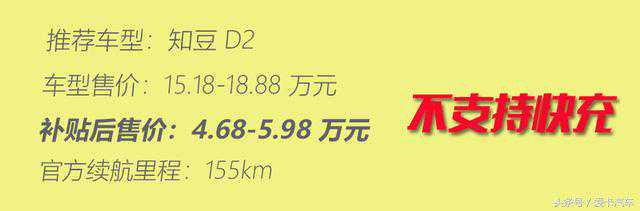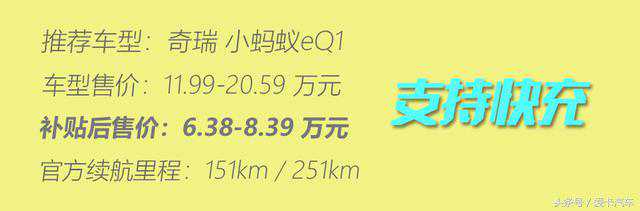 推荐车型信息车型/信息补贴后售价(万元)续航里程(km)是否支持快充奇瑞小蚂蚁/251支持知豆不支持众泰支持北汽新能源
