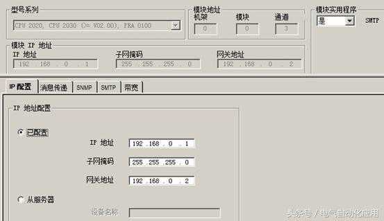 2、右键Ethernet_HMI1选打开,在弹出的下图中修改IP地址:192.168.0.1;子网掩码255.255.255.0,该页面左上角型号系列选择;右侧“模块实用程序选择“选“是”。