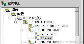 3、在项目浏览器“配置”中找到并双击下图中Ethernet图标。