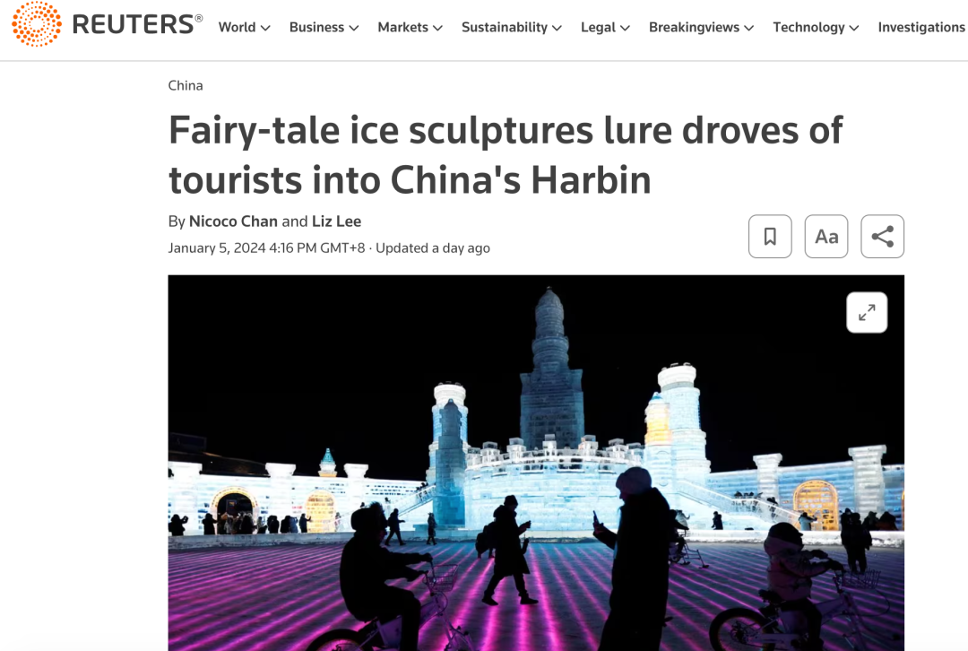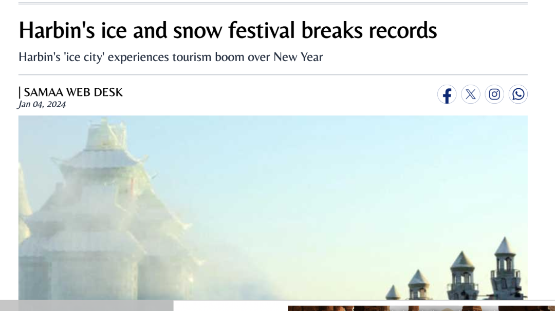 在报道结尾,作者承认哈尔滨冰雪经济带来的实实在在的效益,写道:“冰雪大世界正式运营第一天就迎来了4万名参观者。”