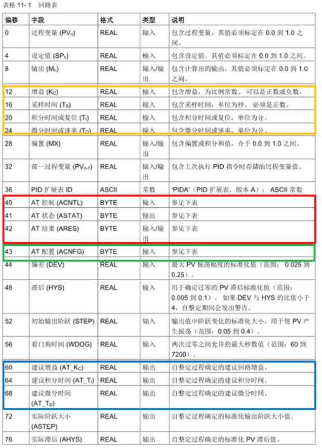 二、PID回路表中应用于自整定部分的介绍