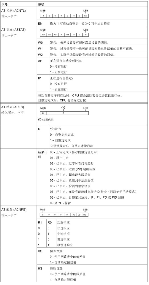 表2.PID回路表控制字、状态字、配置字节说明