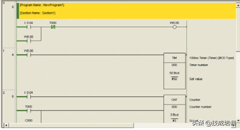 可显示梯形图程序的执行状态,允许检查梯形图程序的执行。将CP1E的运行模式变更为MONITOR模式来显示执行状态。将显示梯形图程序的执行状态。如图2-46所示。