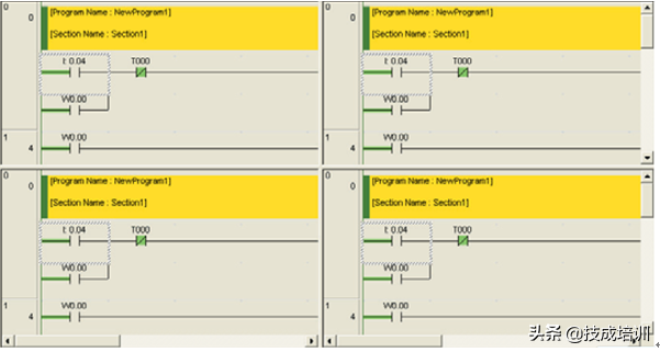 在梯形图程序段窗口中,可拖动窗口帧来显示不同的程序视角。窗口可分为4个部分,如图2-48。