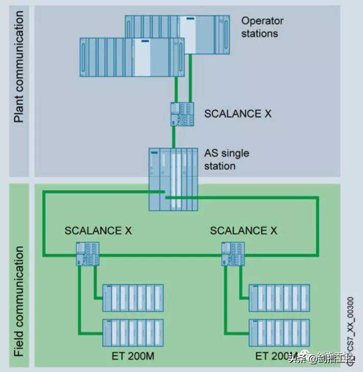 如果需要连接不同的PROFINETIO网络(子网掩码不同),则需要使用PN/PN连接器。以下找了几种常用结构的图: