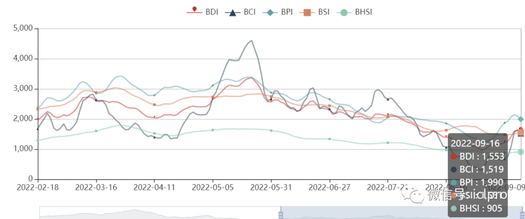 3.截止09月16日波罗的海指数(BDI)为1553,同比上周上升26.33%,开普敦大幅上升