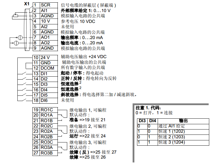 图3ACS510变频器标准宏默认接线图