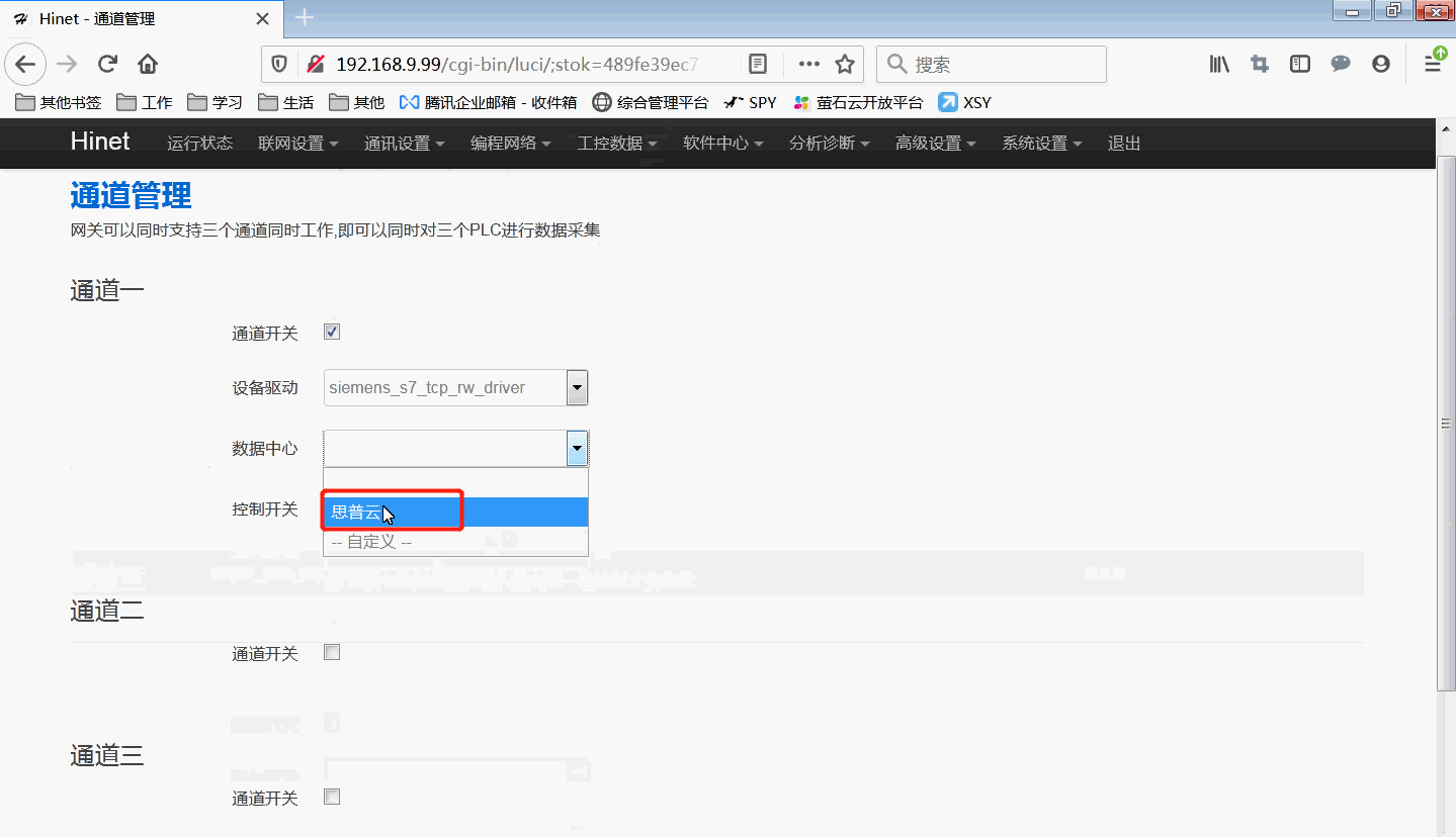 注意:设备IP填PLC的IP,且PLC的IP要与工业智能网关LAN口IP在同网段,此处网关LAN口IP为192.168.9.99,PLC的IP为192.168.9.12,都是9网段,则不需要修改网关LAN口IP。