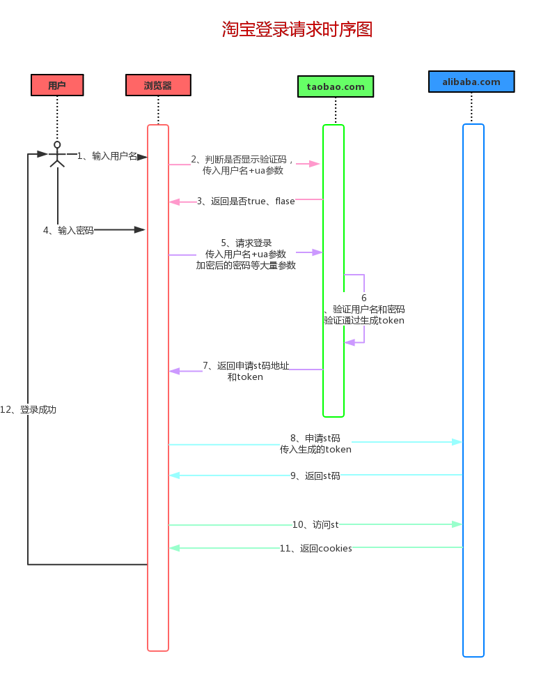 为了便于大家理解,画了一个非标准的淘宝登录请求时序图