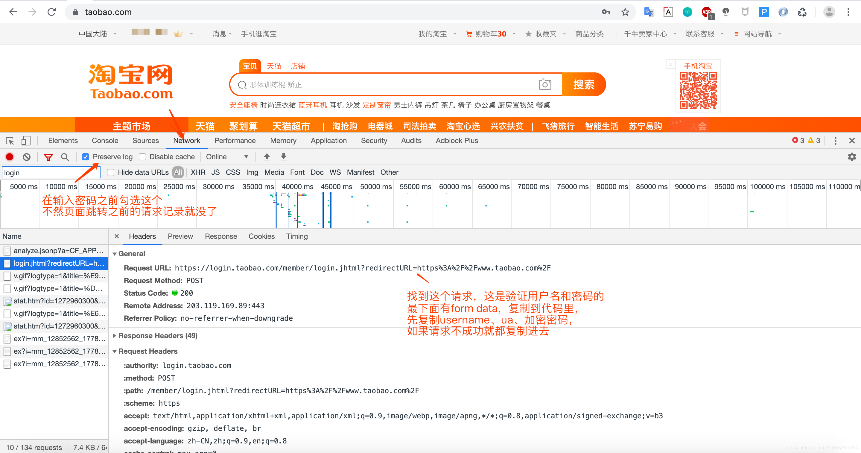 淘宝登录就比较复杂,为什么说复杂呢?因为淘宝登录涉及参数多且请求不止一次!我们就先来讲讲淘宝登录的流程,先把流程原理搞懂,再去敲代码,这样大家就容易理解!
