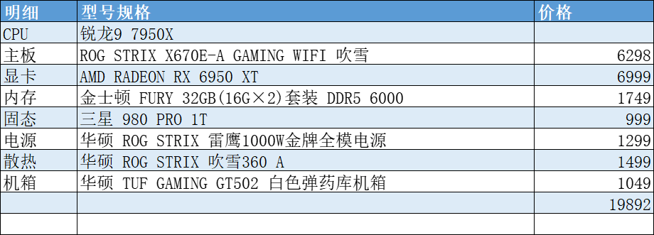 这套除了CPU都是顶配了,毕竟现在13900K的价格不是太合适,13700K如果只打游戏的话是没什么太大问题的