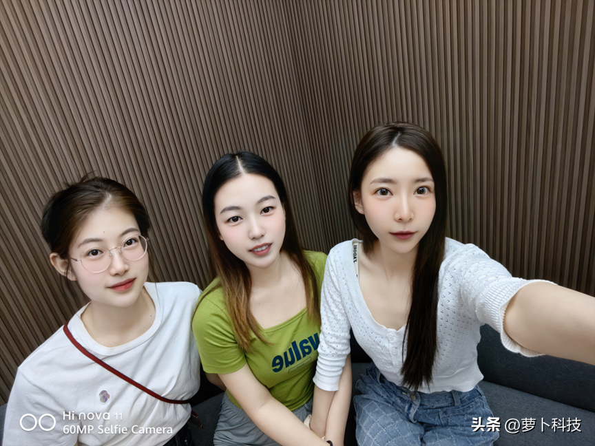 另外,很多妹子喜欢姐妹合照,但又不想站在第一位,会显得脸大;同时也不想站在最边上,因畸变导致变形。而Hinova11这颗100度超广角镜头视野开阔,站在最前面的妹子同样也有小巧面容;站在最边上的朋友,也能拥有精致脸庞。同时,XDPortrait人像引擎能根据不同人物进行适当美颜,妆容不会过重或失真,这颗超广角自拍镜头,表现真心优秀。