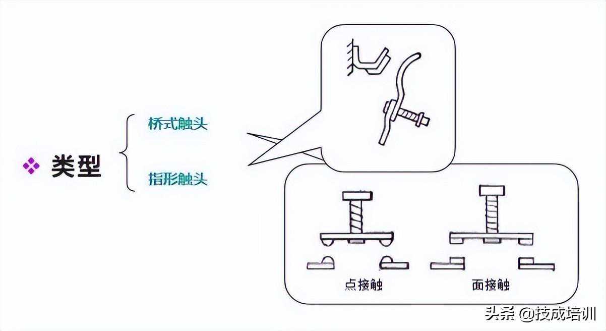 材料:一般采用铜材料制成;对于小容量电器常用银质材料制成