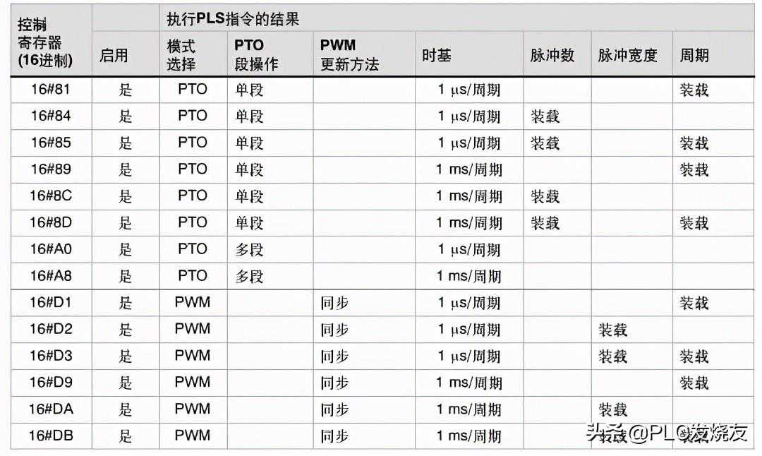 脉冲输出指令是会从系统存储器SM(包括控制字节)中读取数据,从而控制PTO/PWM发生器,这样我们就可以通过修改控制字节,然后执行PLS指令,来更改PTO或PWM信号波形。以下就附上PTO/PWM控制寄存器的SM标志表和PTO/PWM控制字节参考表。