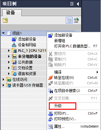 (4)在博途V13SP1/V13SP2软件中,打开博途V12的项目
