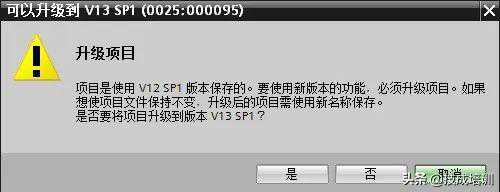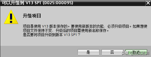 在博途V13SP1/V13SP2软件中,打开博途V13或V12SP1的项目时,会弹出以下对话框。