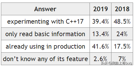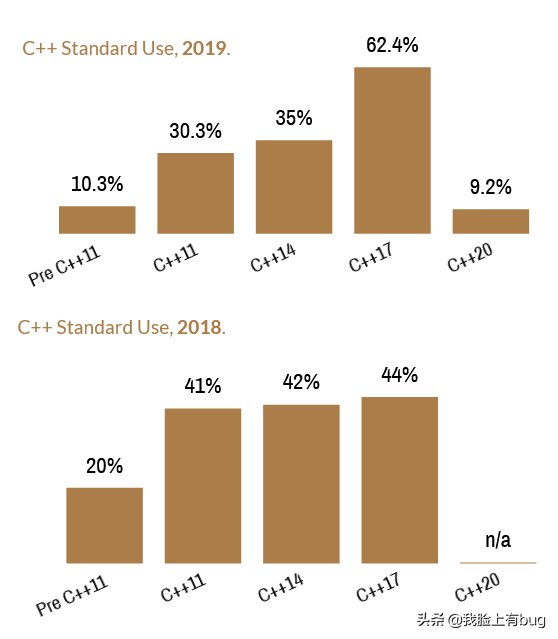 我们可以看到,今年C++17标准的采用率在稳步增长。