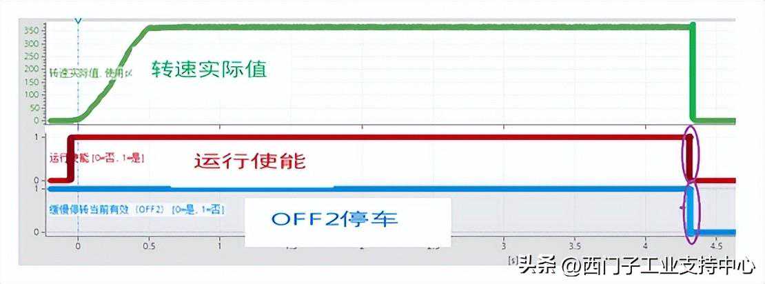 OFF2停车:变频器立即关闭电机,不对电机进行制动,进行惯性停车。