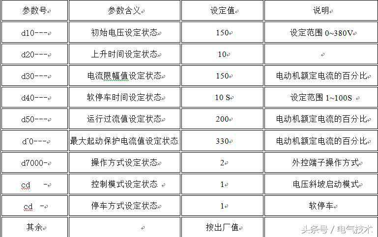 参数设置以控制37kW洗涤浆液循环泵电机的软启动器STRB-371T3P参数为例: