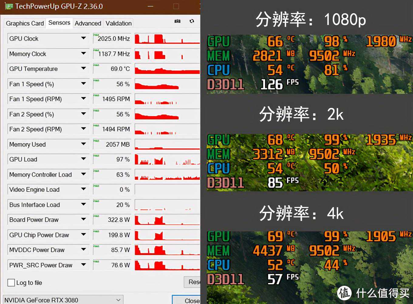 RTX3080由于其大核心显卡在1080p分辨率情况下表现不佳,其真正战场还是在4k分辨率,它基本可以应付大部分游戏Z4k分辨率+最高画质条件下流畅进行,其性能大概是是RTX3090的~85%,从这个意义上也非常有性价比。