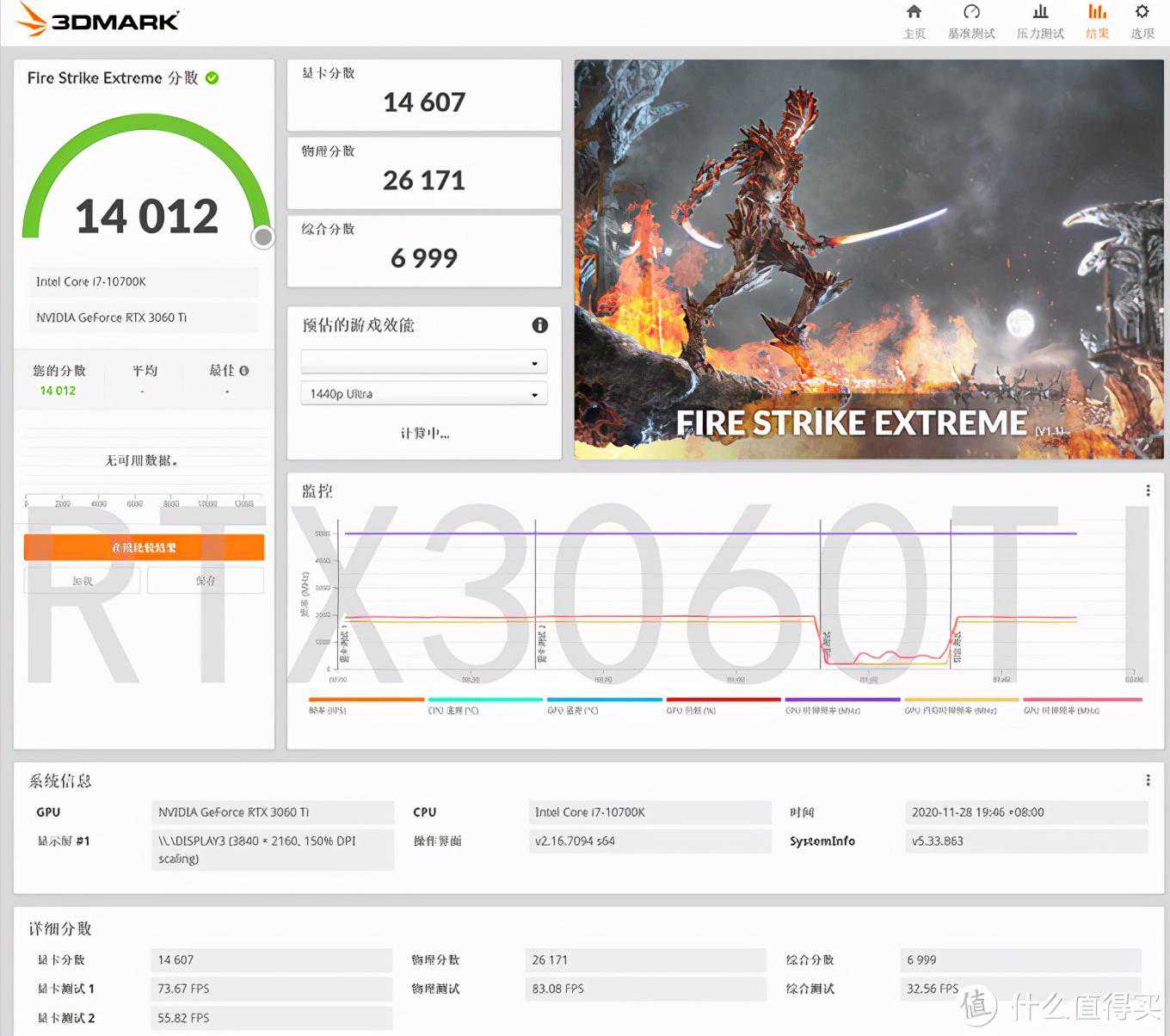 RTX3060TI金属大师的3DMARKFirestrikeExtreme和TimeSpy成绩