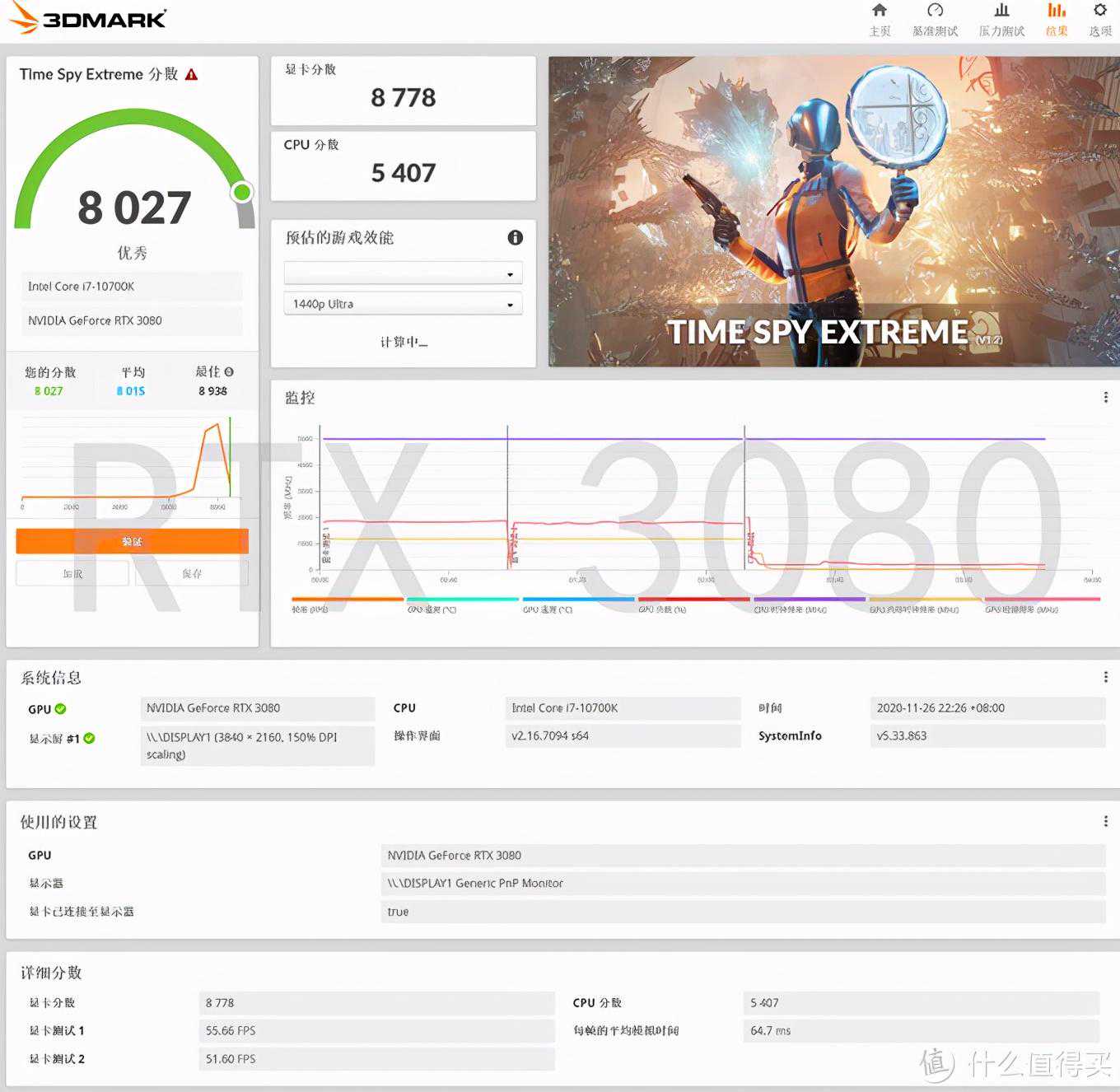 不管是2k还是4k分辨率,RTX3080在终极画质下都能达到流畅的水平。