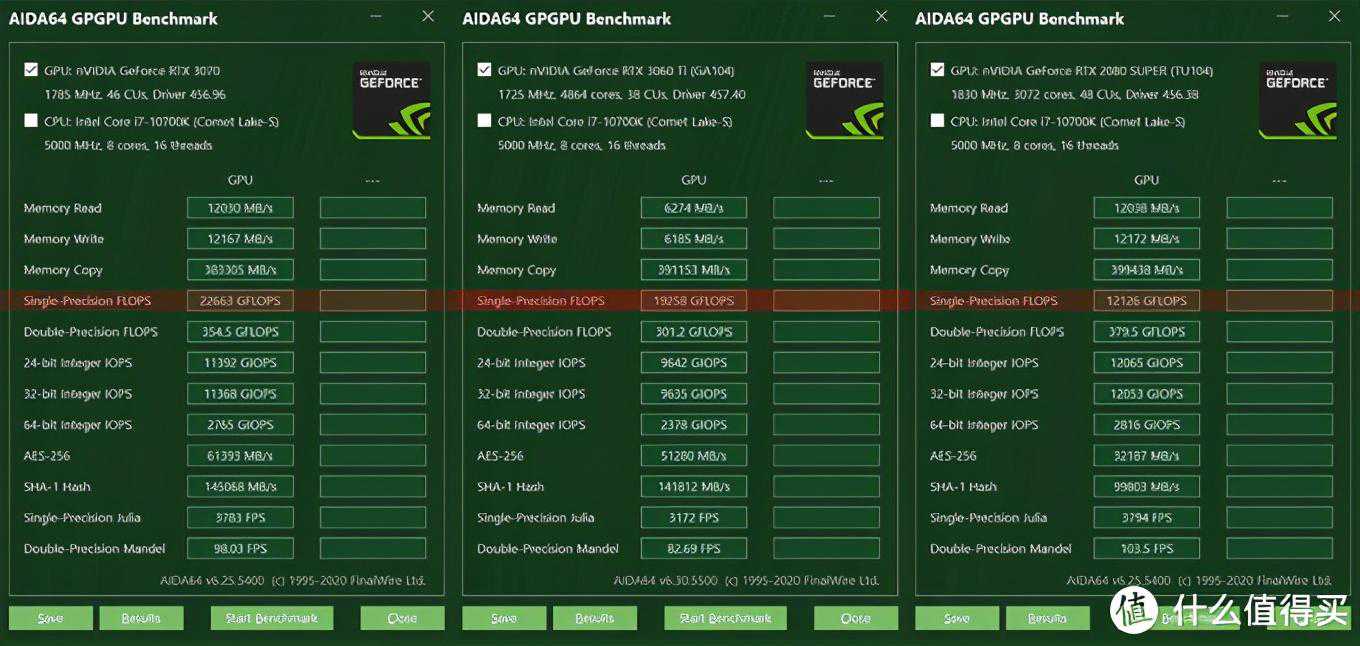 实测RTX3060TI的单精度浮点运算性能是19258GFLOPS,比RTX3070低了不到18%,但比RTX2080S高了快60%。