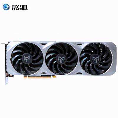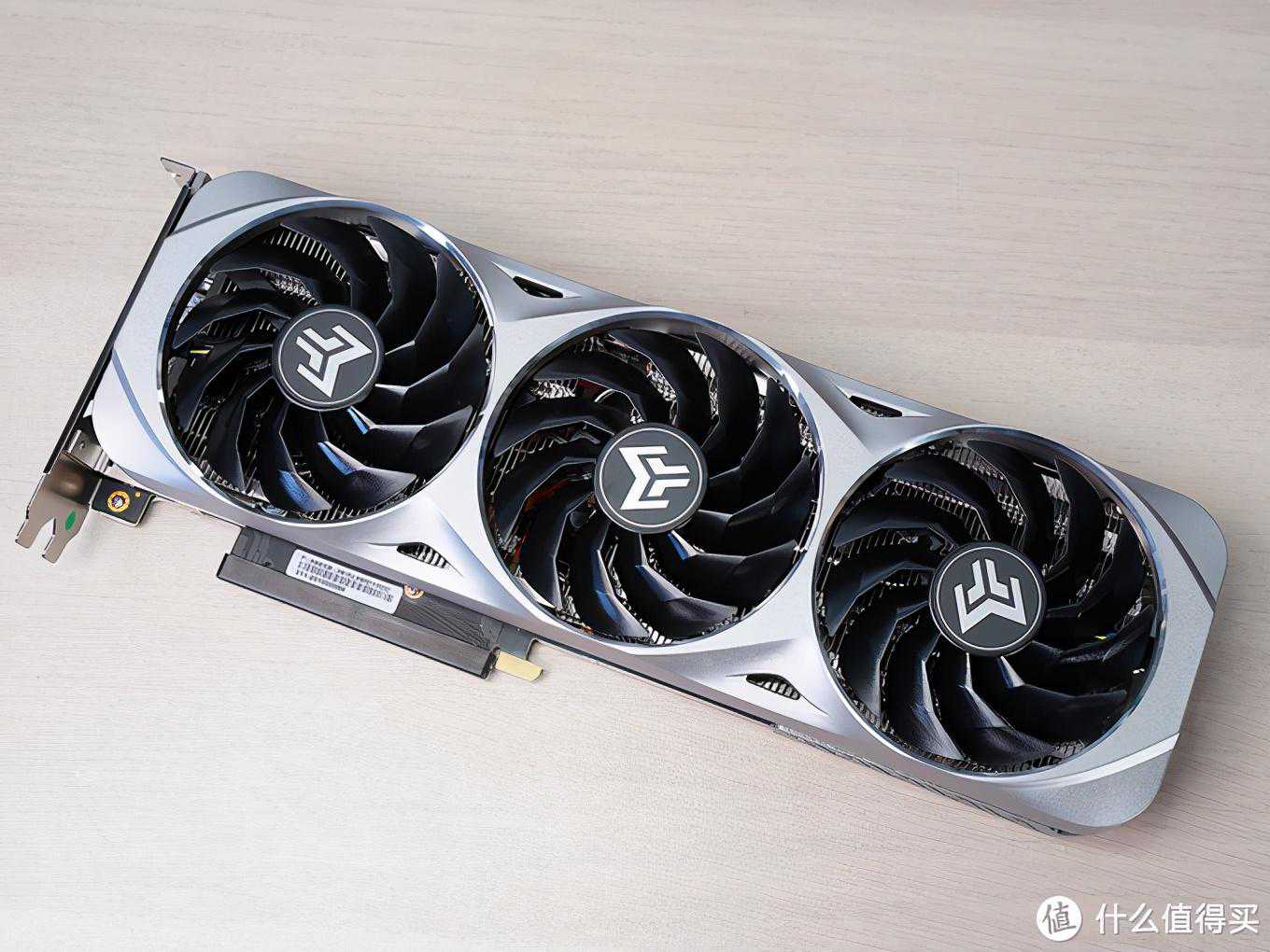 金属表面做了暗哑处理,银灰色非常百搭,正面是3枚9mm风扇,影驰官方叫它寒光星散热系统,显卡的长度为318mm。