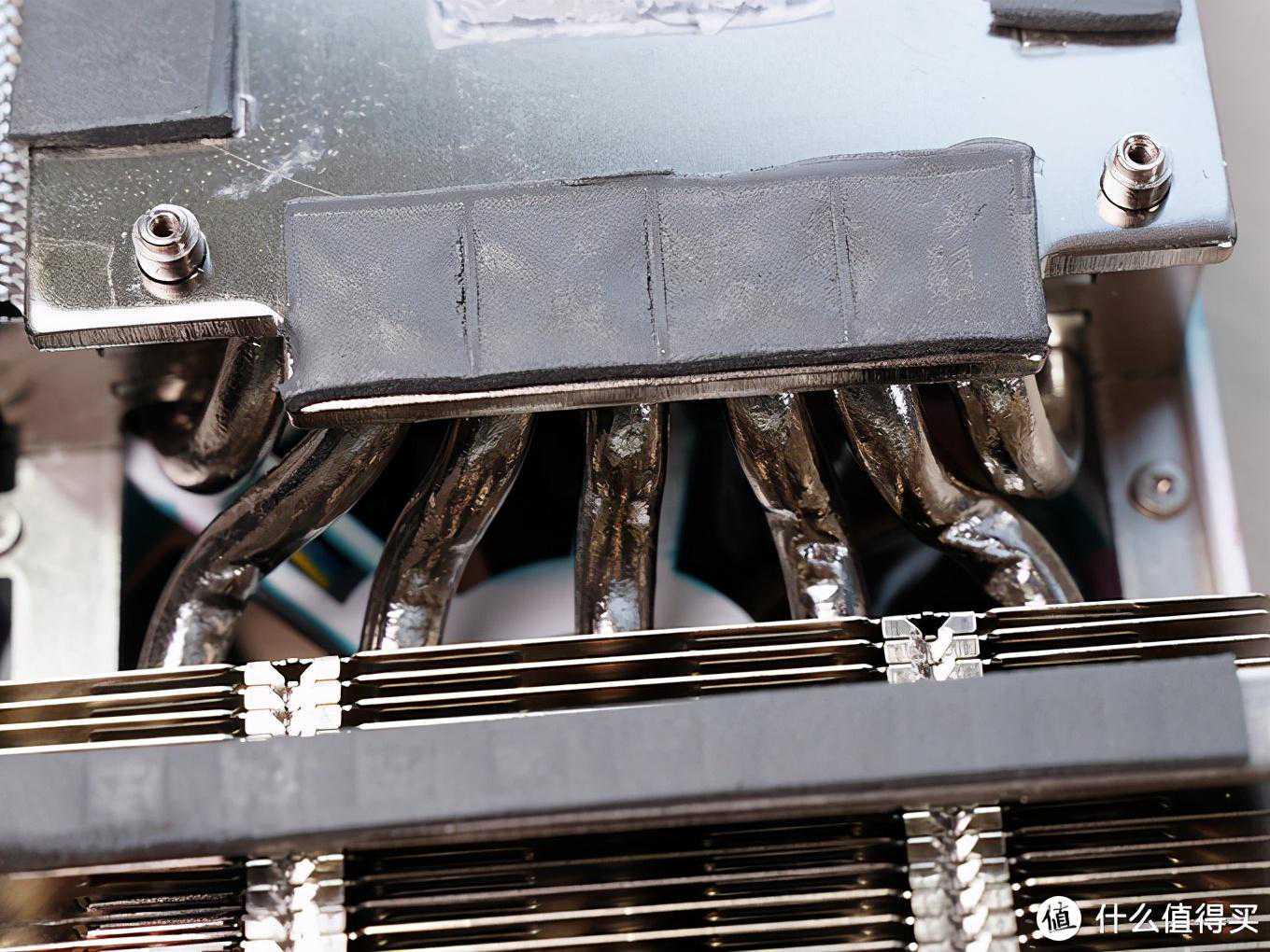 前面说过5根热管是贯穿整个散热器的,另外还有2根成U型来增加核心底座部分的导热性能。