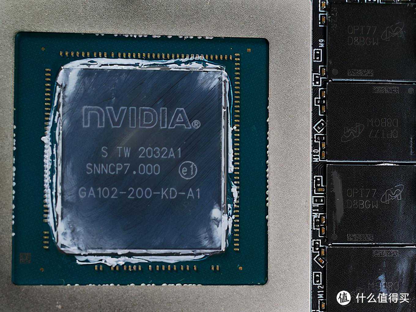 RTX3080的GA102-200-KD-A1核心明显比RTX3060TI的GA104-200-A1核心大,另外显存是美光的GDDR6X显存,一共有10颗,单颗容量1GB,总容量10GB