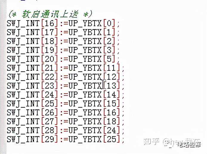 PLC读取软启中的4062后,把数据存到UP_YBTX[0],然后又赋值给了SWJ_INT[16]。如下图。