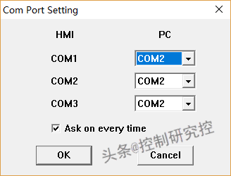 再来看HMI上的COM口和PC电脑上的COM口是如何对应的: