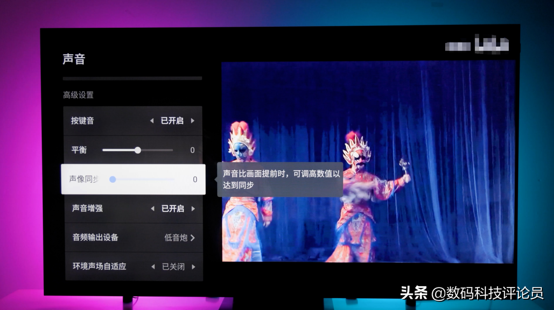 X11还通过了Dolby的认证,出场即带DolbyAtmos全景声功能,可以直接在系统设置里调节。一般专业播放软件里才会有的声像同步功能,TCL也内置在原生系统里。