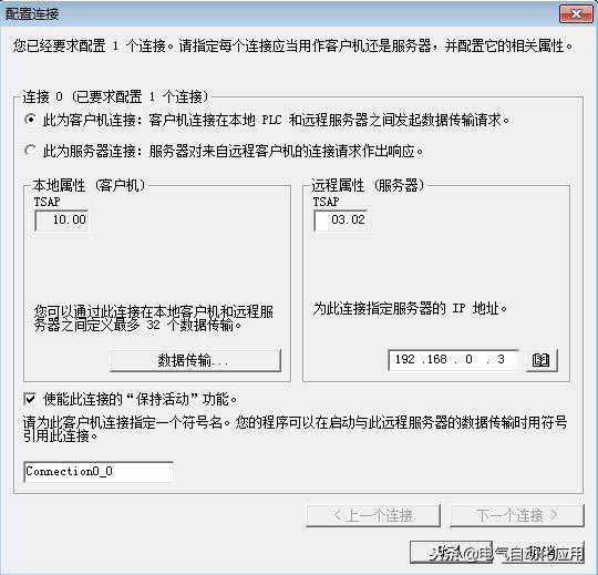 注意:分别组态S7-200和S7-300时,本地和远程的TSAP号是必须完全对应的。通常本地TSAP是默认的,所以在组态此步骤时,需要两边确认一下。
