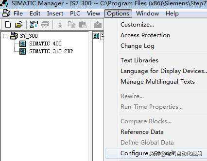 在STEP7中打开S7-300项目文件,通过Options--ConfigureNetwork或者是相对应的图标打开NetPro对话框。