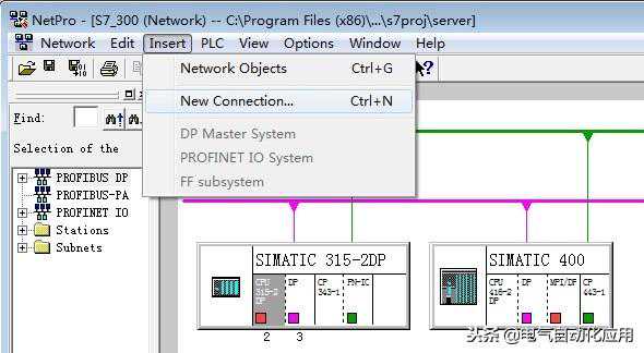 在NetPro中选中S7-300站的CPU并通过菜单命令,Insert--NewConnection添加一个新连接。
