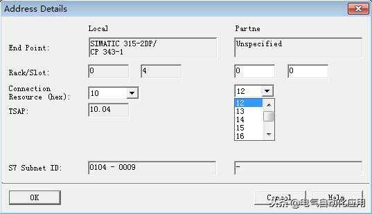 在“AddressDetails”对话框中,本地的TSAP通常选用默认,输入通信伙伴的TSAP,本例中S7-200的TSAP为12.00。