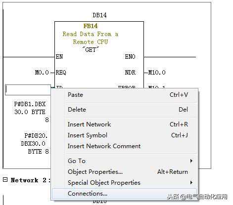 对于FB14“GET”和FB15“PUT”的输入参数'ID",也可通过鼠标右击功能块ID引脚,可以自动插入本地ID连接。如下图所示: