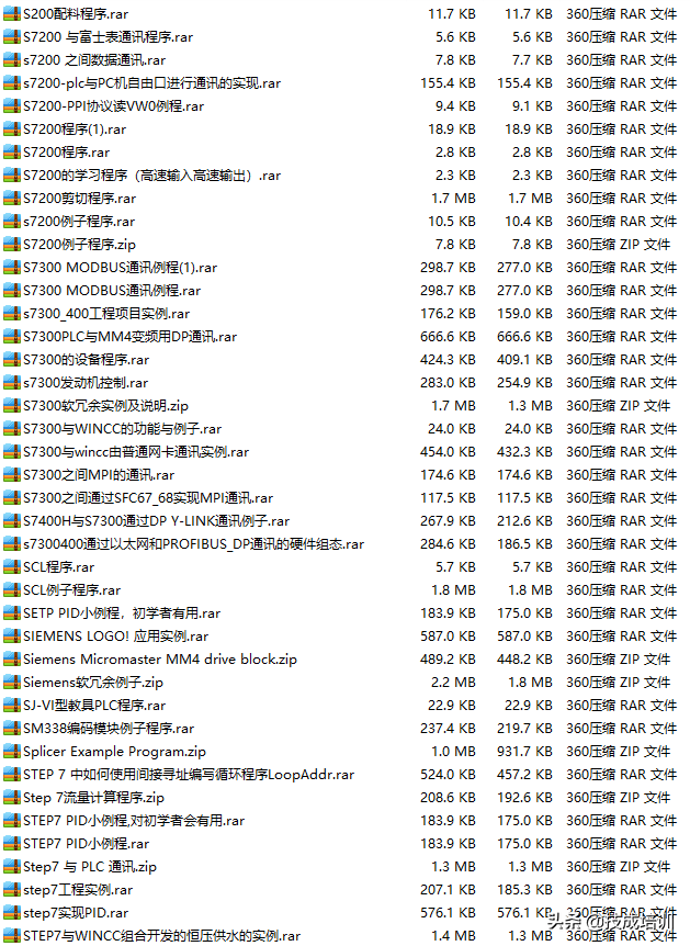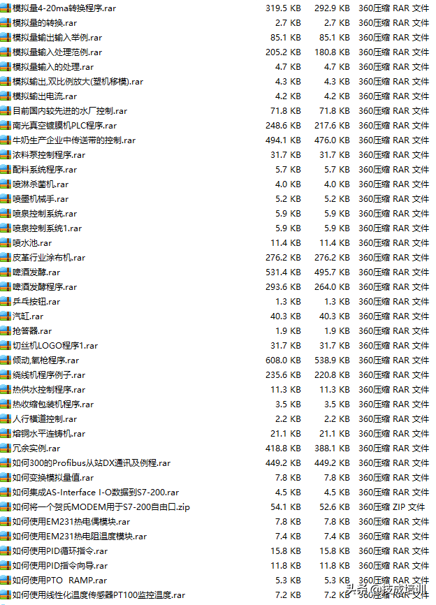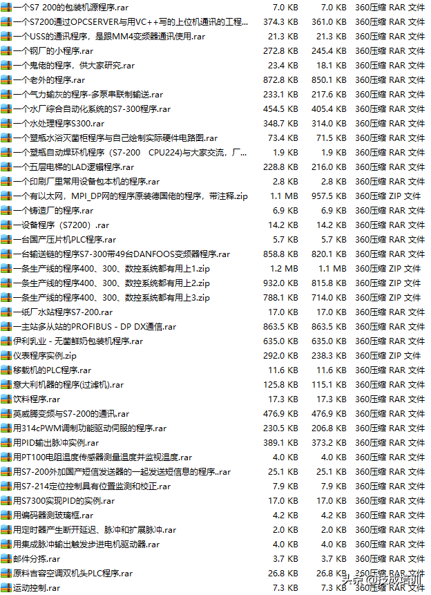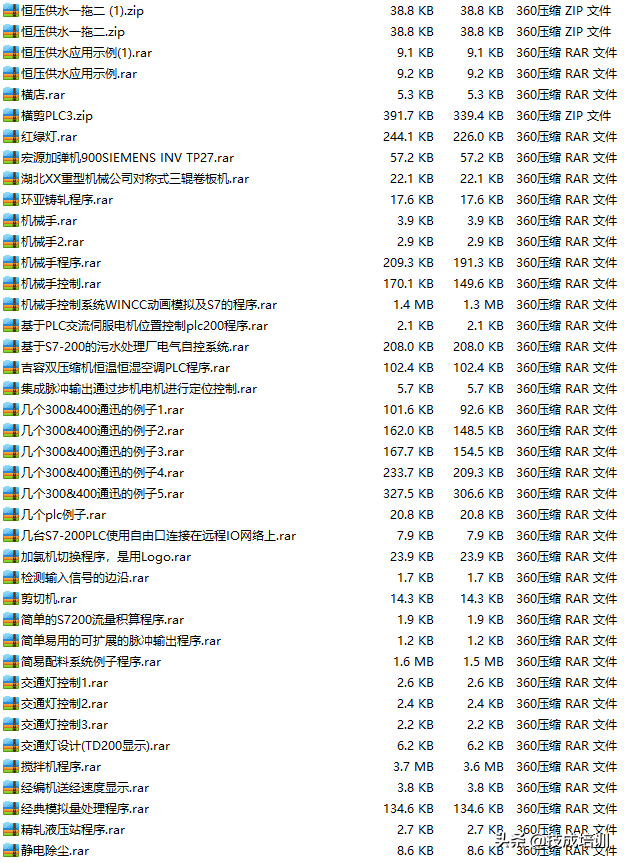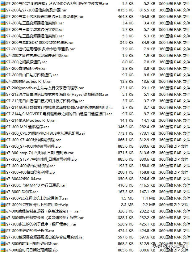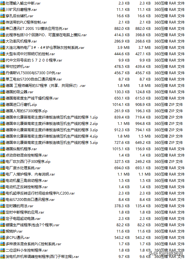 今天给大家分享西门子PLC的案例,包含很多内容,比如:S7-200与变频器USS通讯控制生活消防两用水泵、平台输送辊、S7-300PLC在押出机上的应用例子、装饰灯循环程序、自动灌装机、C5225立式车床程序、PID编程实例、PLC发电机励磁控制程序、德国辛北康普高密主度纤维板连续压机生产线的程序等793个.